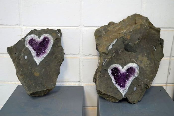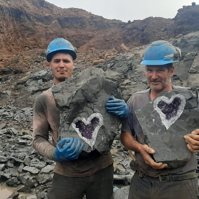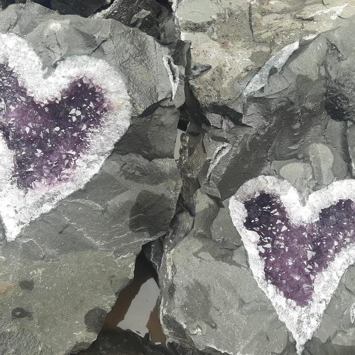 2021年07月09日石頭中藏有驚人的寶藏!2位礦工在烏拉圭與巴西的邊境開採礦石時,竟找到了2塊奇特的石頭。石頭中藏有愛心形狀的紫水晶,看起來如夢似幻。這一消息在網路上傳開後,引發一波話題,大家沒想到紫水晶會以這麼浪漫的方式呈現在眼前。