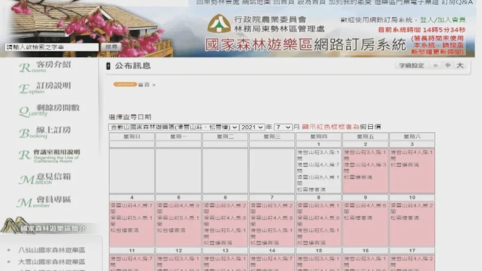 待在家中1個多月,很多民眾已經迫不及待要出遊,全台各地開始湧現車流,還有民眾搶先規劃暑假旅行。從林務局東勢林管處訂房官網可以看到,從6/29到7/21,合歡山松雪樓訂房全部客滿,滑雪山莊部分房型也額滿。
