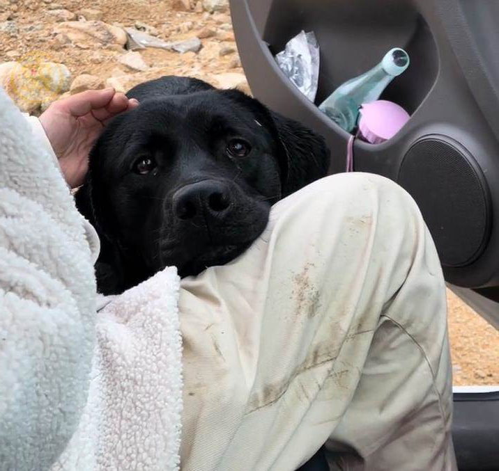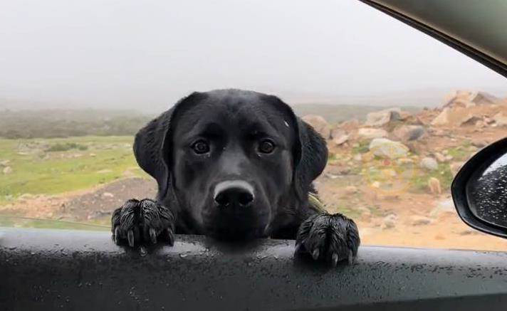 ▼車子距小黑點越來越近,大家這才看清,原來那是一隻黑色的拉布拉多犬。當天折多山下了雨,狗狗全身的毛髮都濕透了,牠看到停在不遠處的車子,就像抓住了救命稻草一樣,眼睛瞬間亮起,火速衝了過來。