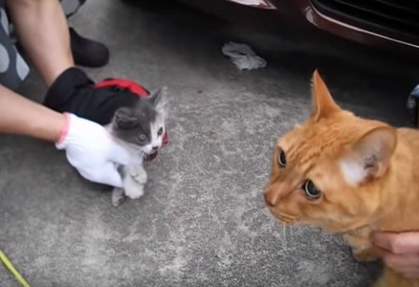 ▼橘貓前輩幫忙勸說,鄰居順利救出小貓: