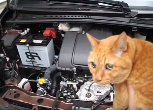 引擎蓋裡「躲小奶貓」怎樣都不出來 只好派鄰居大橘幫忙喊:裡面很危險!