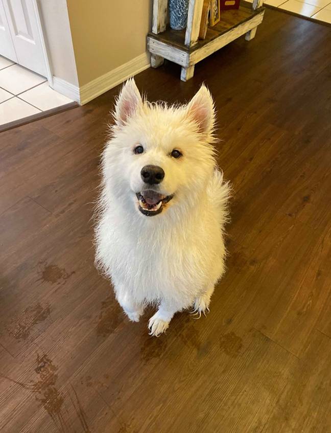 ▼Carley家的薩摩耶叫Nanuk,今年已經7歲了。牠天生毛髮很多,從小渾身的毛毛就蓬蓬的,看起來超可愛。那天Carley帶狗狗去剪毛,本來只想稍微修剪一下,但美容師卻把Nanuk頭頂上的毛毛全都剪掉了。