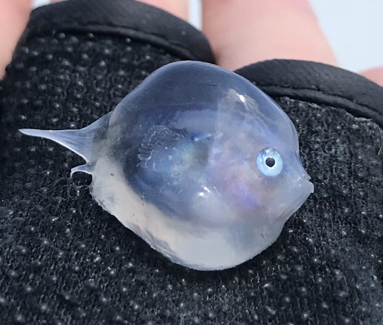 ▼這條小魚體型圓潤,呈透明膠狀,大大的眼睛清晰可見,非常可愛。