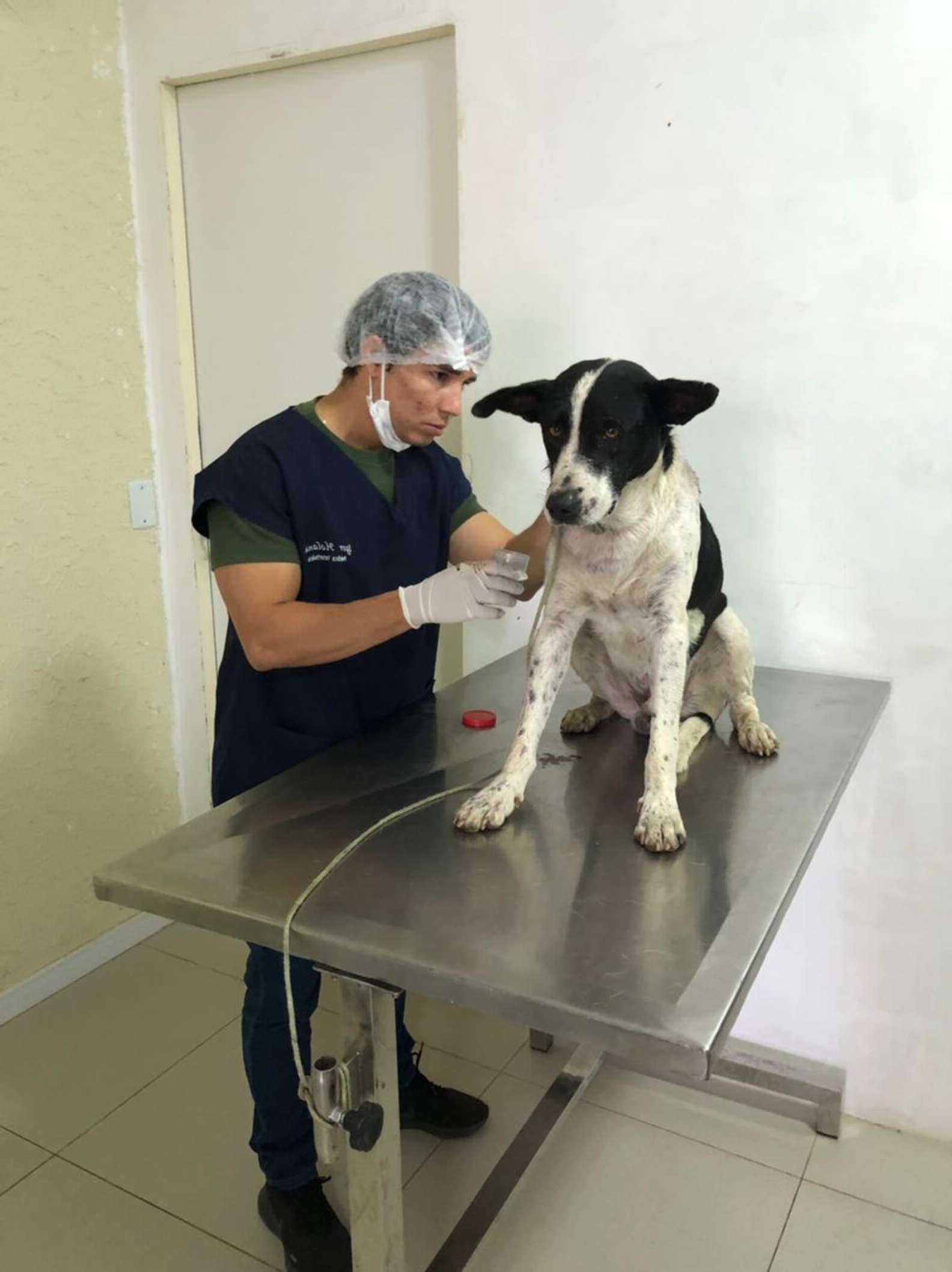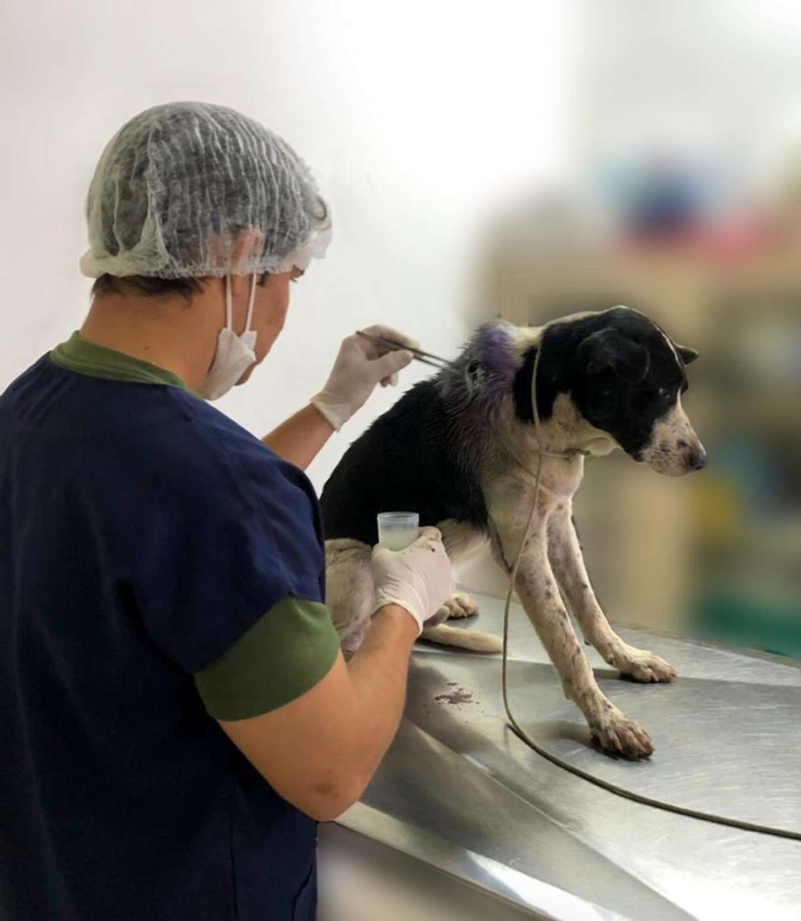 ▼Igor表示:「當我們接近這隻狗狗時,我們意識到牠是在尋求幫助的!」隨後獸醫們將狗狗帶進診間,做了一般的臨床評估,並幫牠清潔傷口。整個過程中狗狗都非常安靜,乖乖接受治療。牠可以說是獸醫們見過的最配合的病人了。