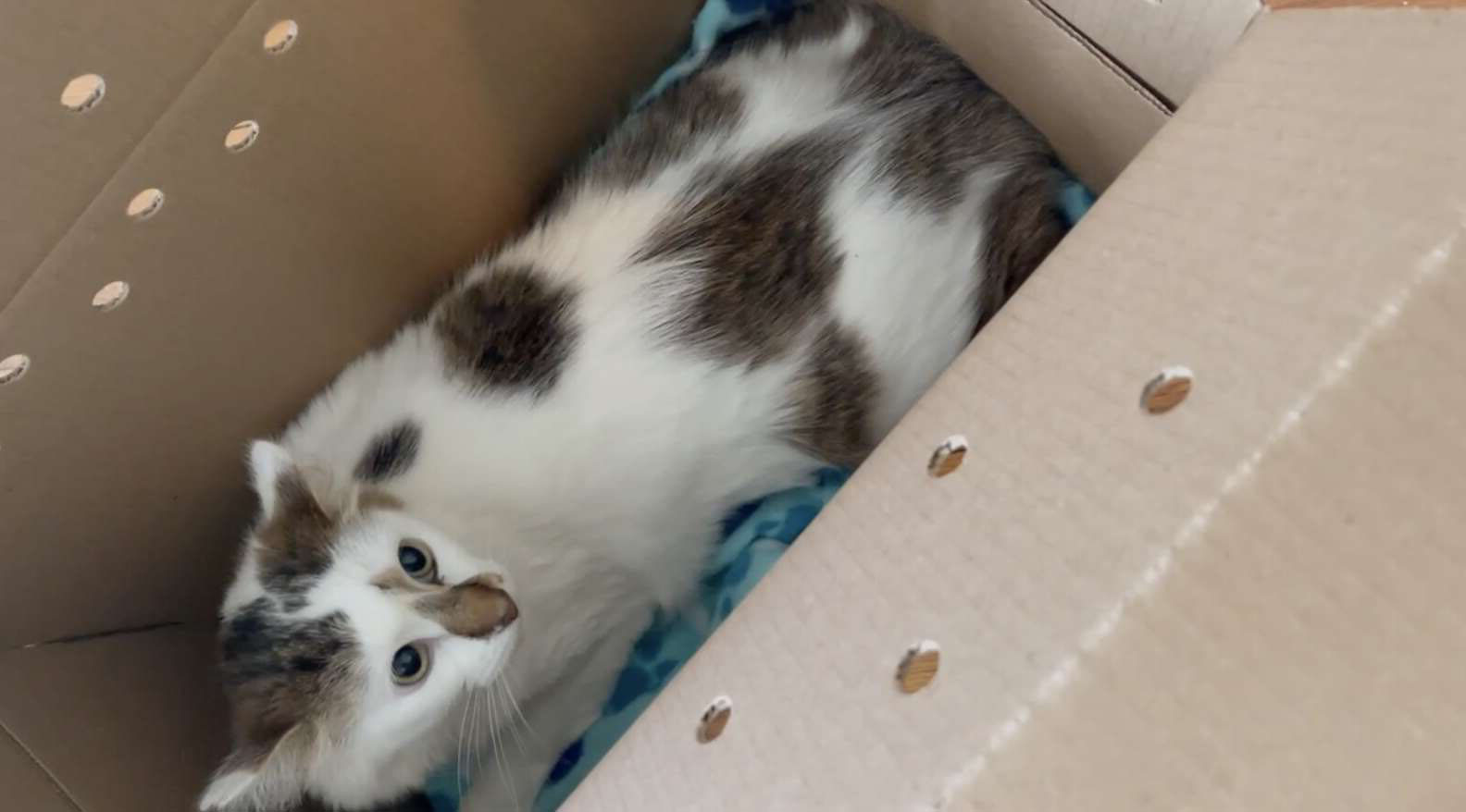浪貓初來到新家「不敢置信」 小心翼翼窩紙箱看:這些我全都可以用嗎?