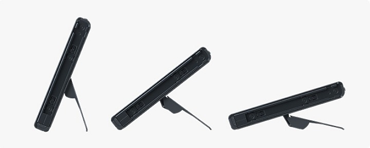 ▼Switch OLED不僅外表有改變,內建記憶體也從32GB升級至64GB,還有記憶體卡槽,機背可供支撐的多轉軸腳架也有提升。腳架變寬,支撐效果變好。官網還給出3段的高度調整示範,不過這次的轉軸是採取無段的自由調整方式。