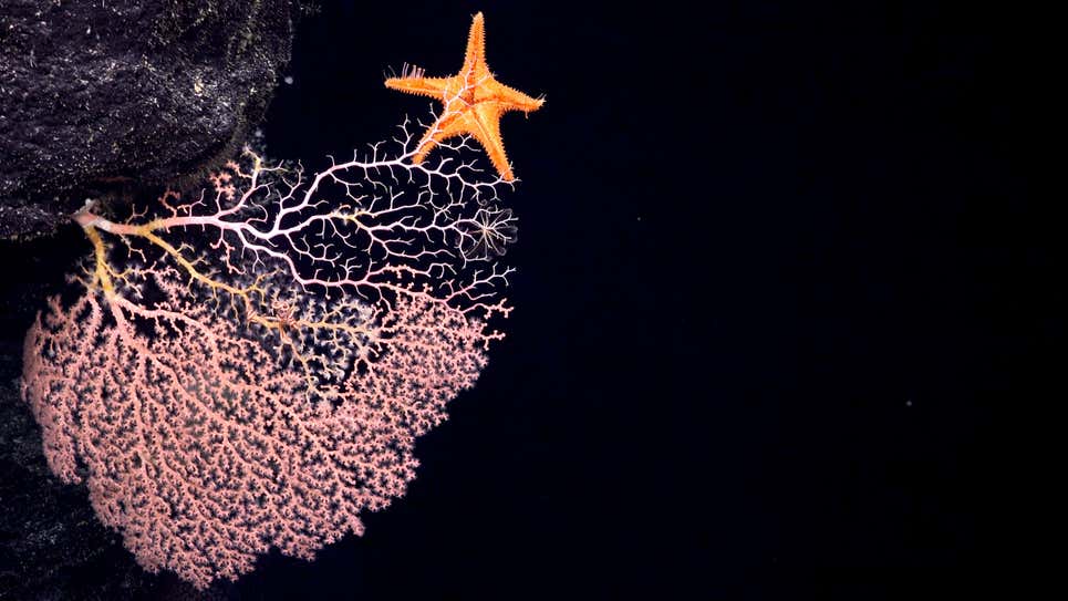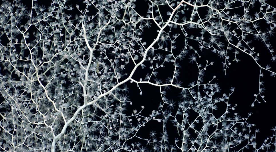 ▼科學家們拍到了不少罕見的海洋生物,比如幽靈般的白色珊瑚。