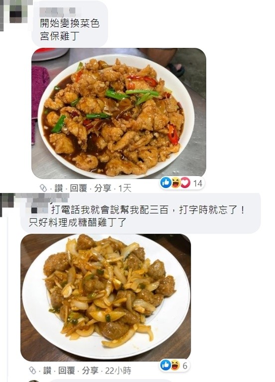 網友們看到後也紛紛笑說:「少了啤酒,選我正解」、「國文老師要哭了」、「好險我都說亂炸300」、「幸好是鹹酥雞300,若是甜不辣300就不得了」、「還好不是多加300蒜頭」、「是你以為老闆理解你,但其實沒有」、「吃到爽,一年內不會想吃鹹酥雞」。幸好原po廚藝超好,將鹽酥雞變成宮保雞丁、糖醋雞丁,並全部吃光了~