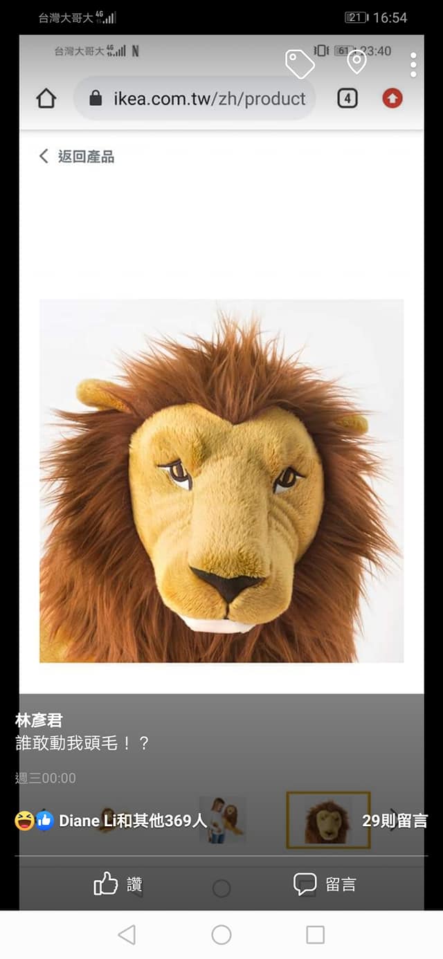 ▼這件事引發網友討論,IKEA小編還將整個畫面轉po到粉專上,並提醒說:「小編溫馨提醒,幫獅子先生洗完澡不要拿去烘乾,不然秀髮會消失喔!不過小編也私心覺得,烘乾的獅子頭其實也蠻可愛的。」
