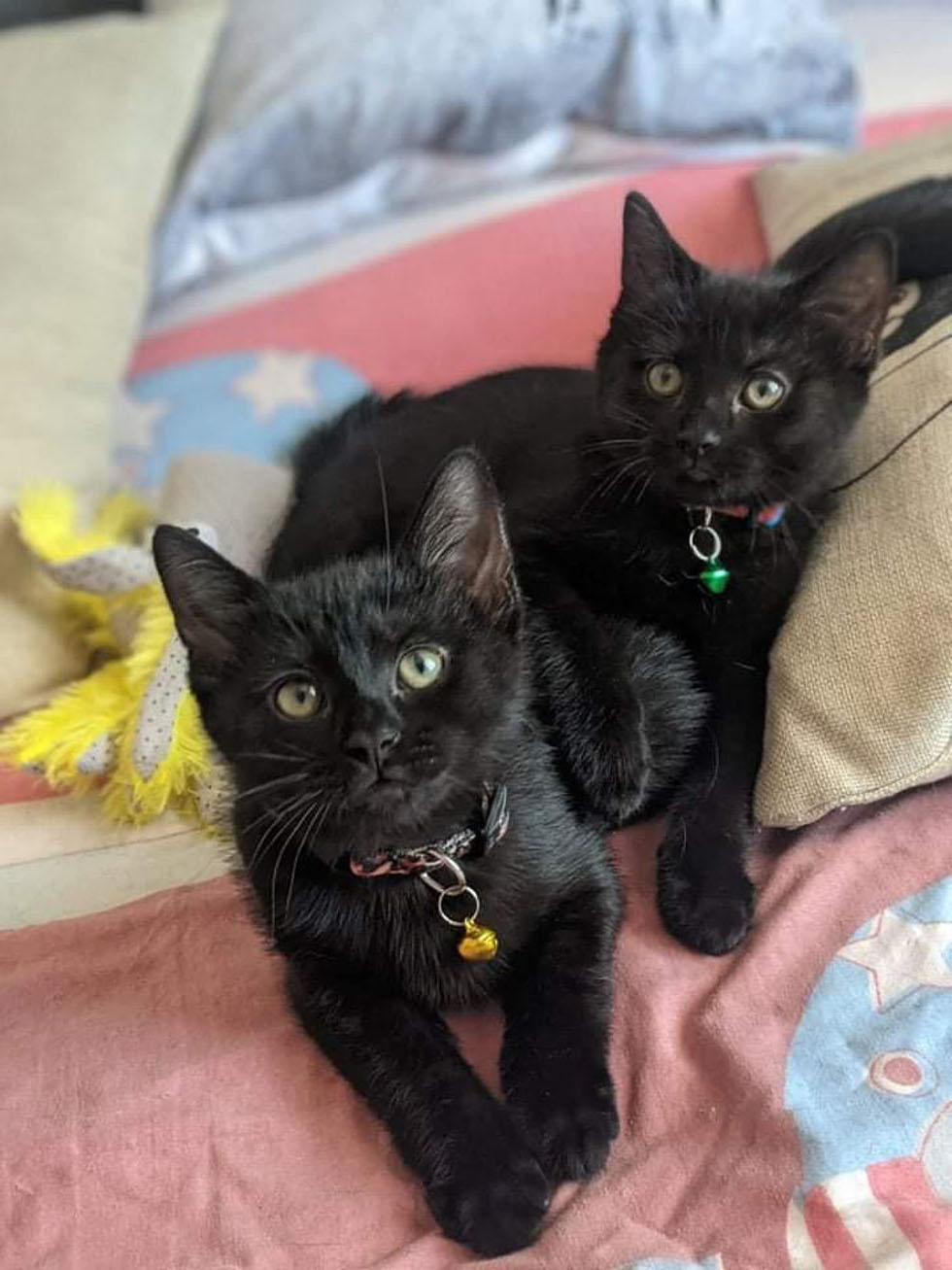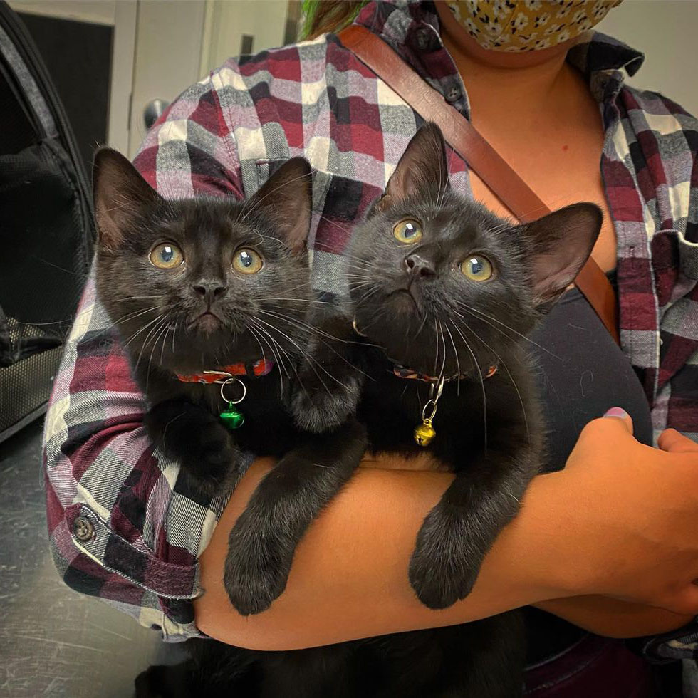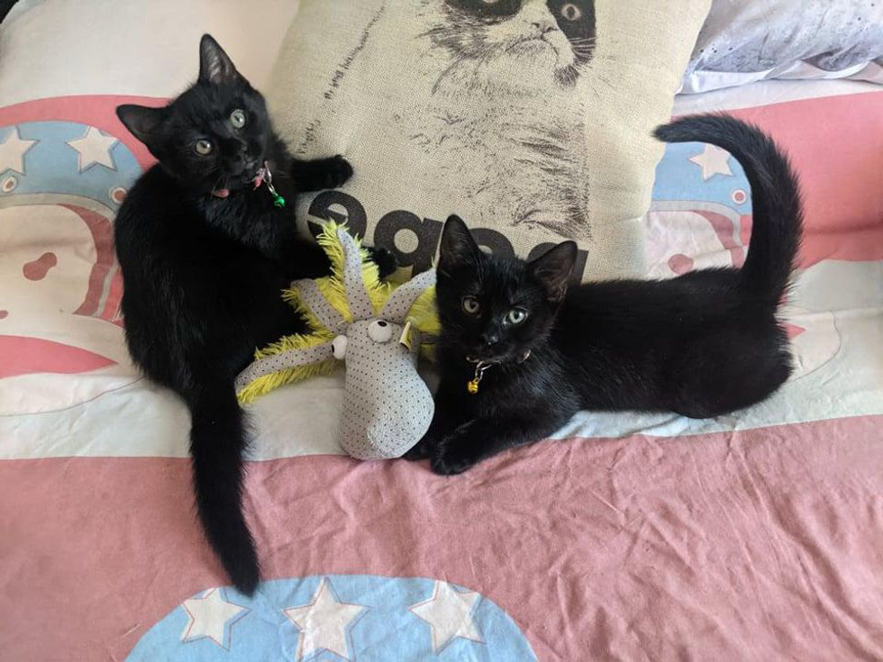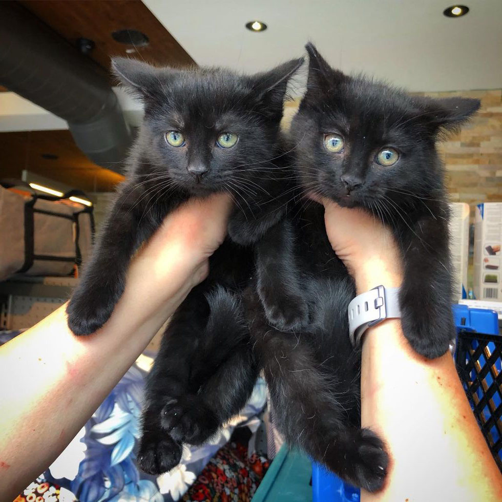 2021年07月22日日前加拿大蒙特婁(Montreal)的一位動物救助者Micheline發現了2隻黑色的小浪貓。牠們剛剛幾週大,一起在當地一戶人家的花園裡徘徊,想要找點食物填飽肚子。Micheline將牠們帶到動物救援機構,讓牠們過上了全新的生活~