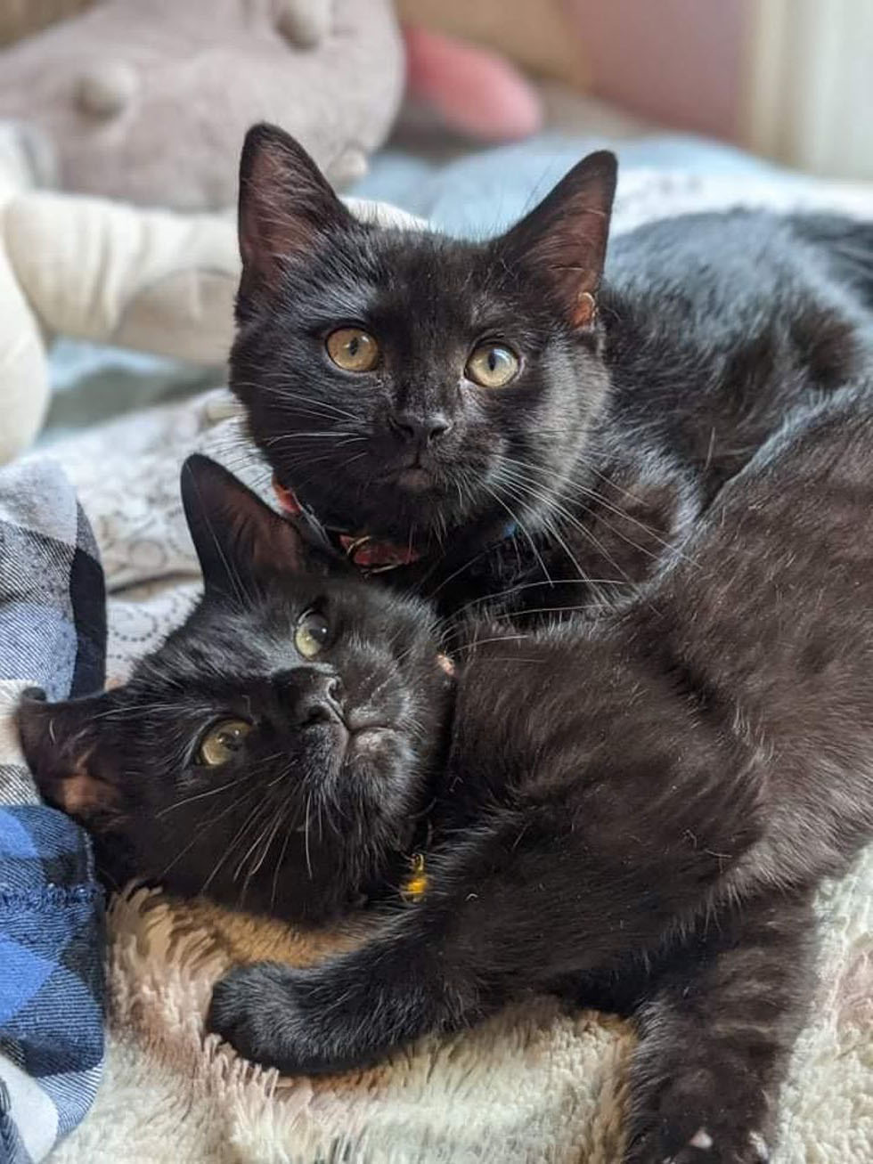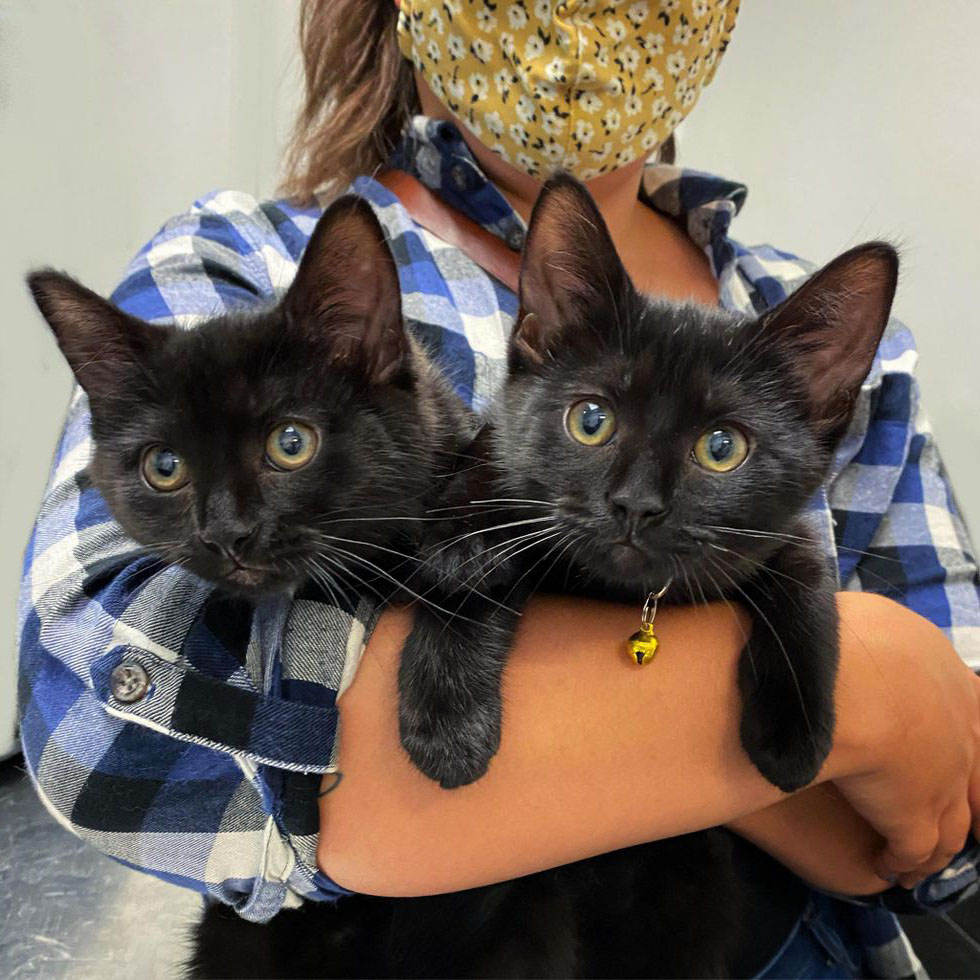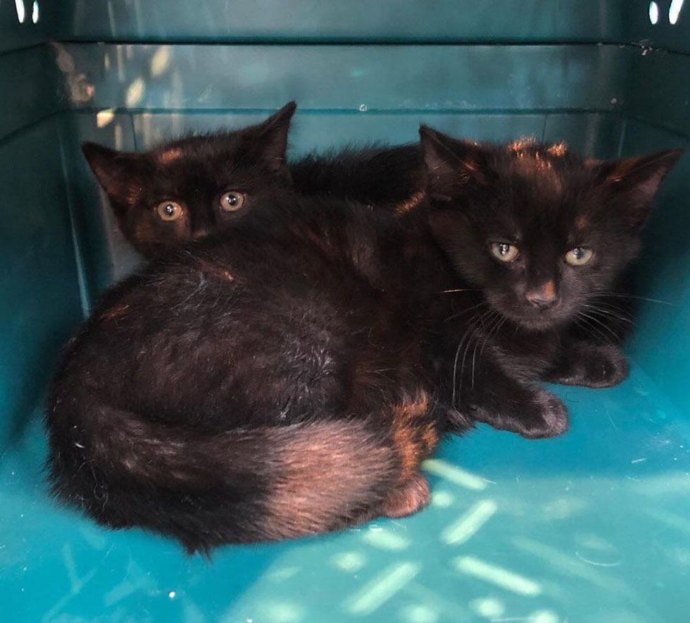2021年07月22日日前加拿大蒙特婁(Montreal)的一位動物救助者Micheline發現了2隻黑色的小浪貓。牠們剛剛幾週大,一起在當地一戶人家的花園裡徘徊,想要找點食物填飽肚子。Micheline將牠們帶到動物救援機構,讓牠們過上了全新的生活~
