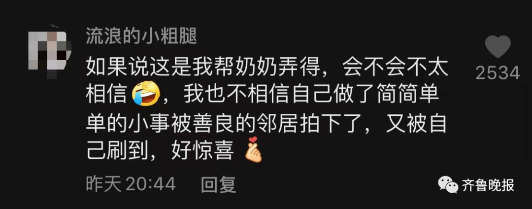 ▼住戶將這一幕拍下來po上網,並說:「覺得這個鄰居肯定是個很孝順的人,也做到了對鄰居的一種尊重。」這件事引發網友討論,當事人家看到新聞後解釋說,這是自己幫奶奶弄的,沒想到這件簡簡簡單的小事被善良的鄰居拍下來,自己上網時看到感覺很驚喜。