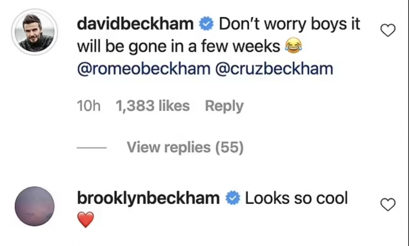 ▼日前貝克漢在IG分享了一張理平頭的照片。原來他的2個小兒子羅密歐和克魯茲留起金色、粉紅色的平頭,他也不甘示弱,決定理同樣的髮型。