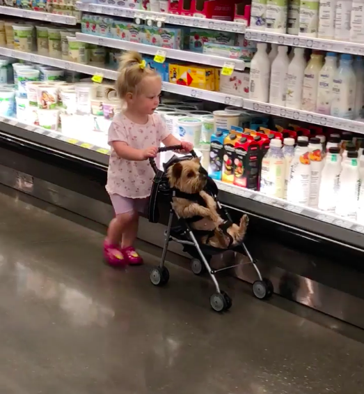 想要什麼自己挑嘿!小女孩「推狗娃娃車」逛超市 網笑:幼幼版媽媽帶小孩~