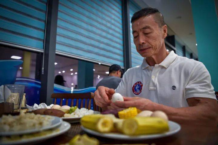 ▼為了保持營養均衡,楊新民的食譜非常講究。牛羊肉、雞蛋、魚肉、蔬菜都是每天必吃的。他認為「3分鍊、7分吃」,保持健康的飲食習慣已經幾十年了。