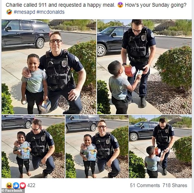 ▼Anthony跟Charlie的爸爸說:「這太有趣了。他問我是不是麥當勞,還想要一份歡樂兒童餐。一會兒會有警員去你家查看,誰知道呢,也許他會在麥當勞停一下。」果然,警員Randolph 'Scott' Valdez帶著歡樂兒童餐來到了Charlie家。