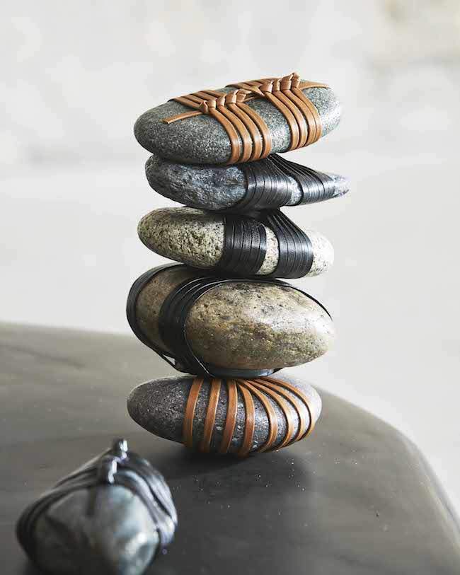 ▼這款「手編皮革石頭飾品」就是「Basketry」系列作品之一。