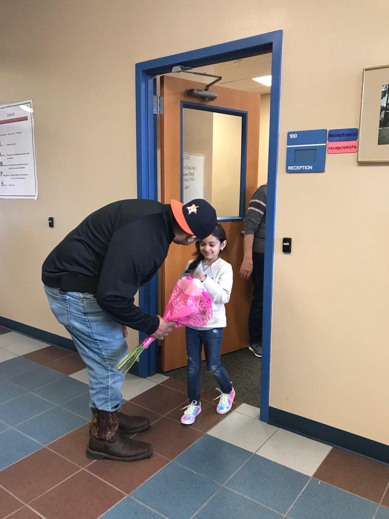 ▼爸爸趁著工作時空閒的時間,跑到學校送了女兒一束花。