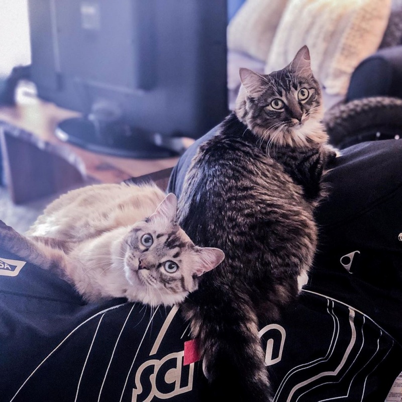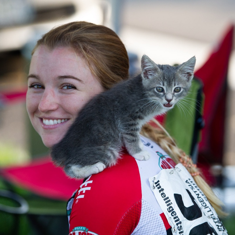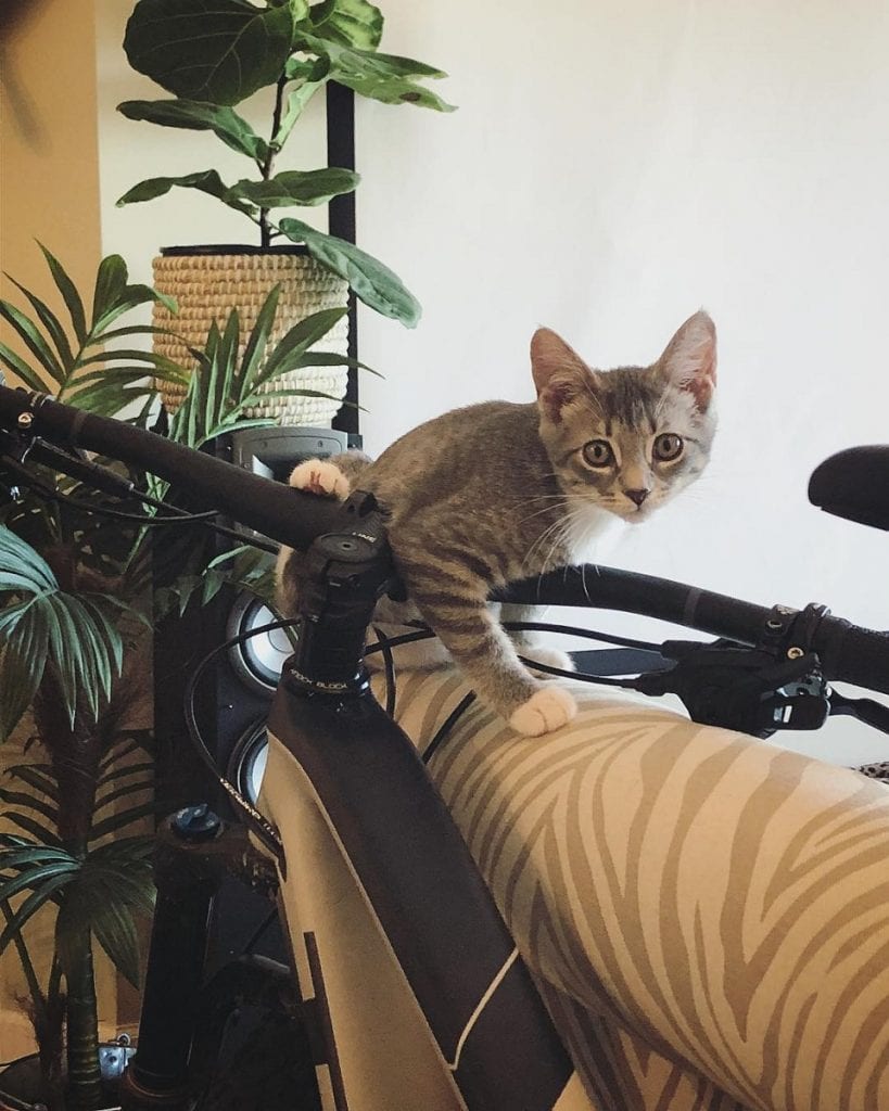 2021年08月09日緣分真是一種很奇妙的東西。美國密西根州女子Madison Kelly是一名自行車手,同時還是一個溫柔的貓奴。她家有一隻叫Kitsy的19歲橘貓,本來Madison不準備再養其他貓了,但她卻被一隻叫Puig的小貓賴上,不得不成為了Puig的鏟屎官。