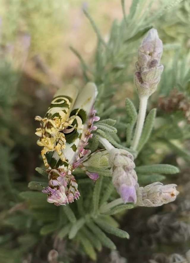 ▼這是一隻「花螳螂」(Flower Mantis),牠善於偽裝,能在花叢中完美隱身。Margaret給牠取名為「Miss Frilly Pants」,並將牠放回了薰衣草花上。
