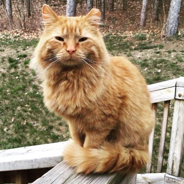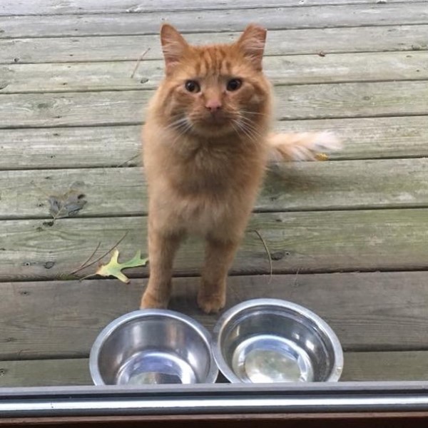 ▼前屋主曾告訴Lex,這隻橘貓叫Cinnabon,是生活在附近的流貓之一。野外不容易找到食物,所以Cinnabon偶爾會跑到人類的陽台來討食。牠非常警惕,往往看到人就會躲起來。Lex動了惻隱之心,開始在門口放罐頭、清水,讓Cinnabon能夠填飽肚子。