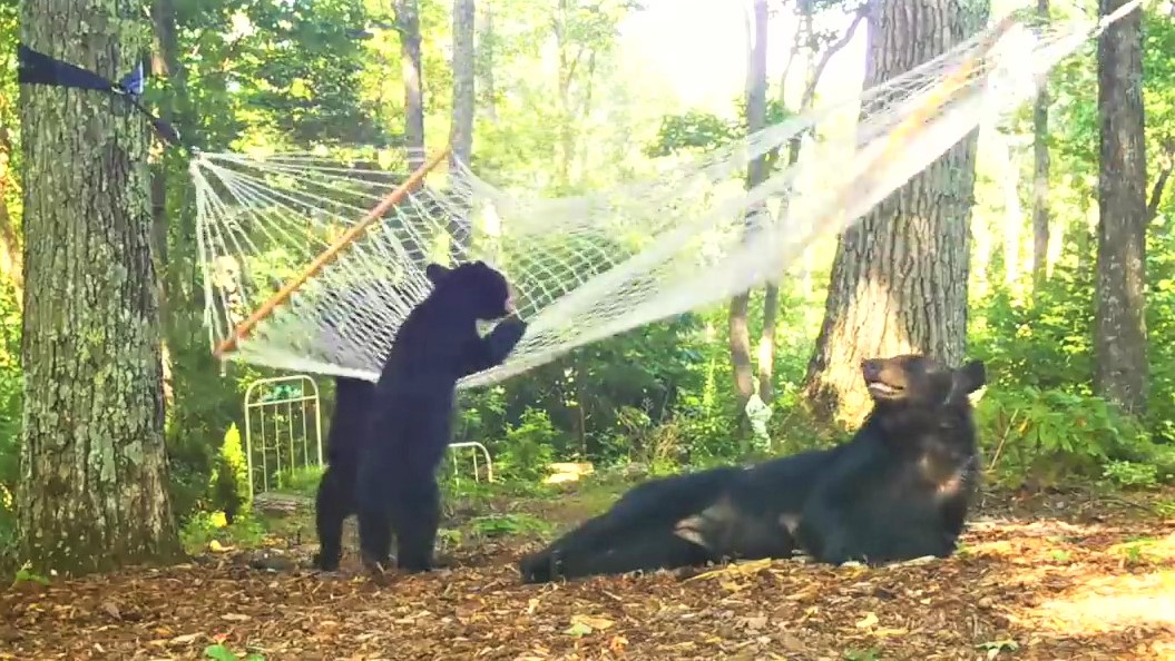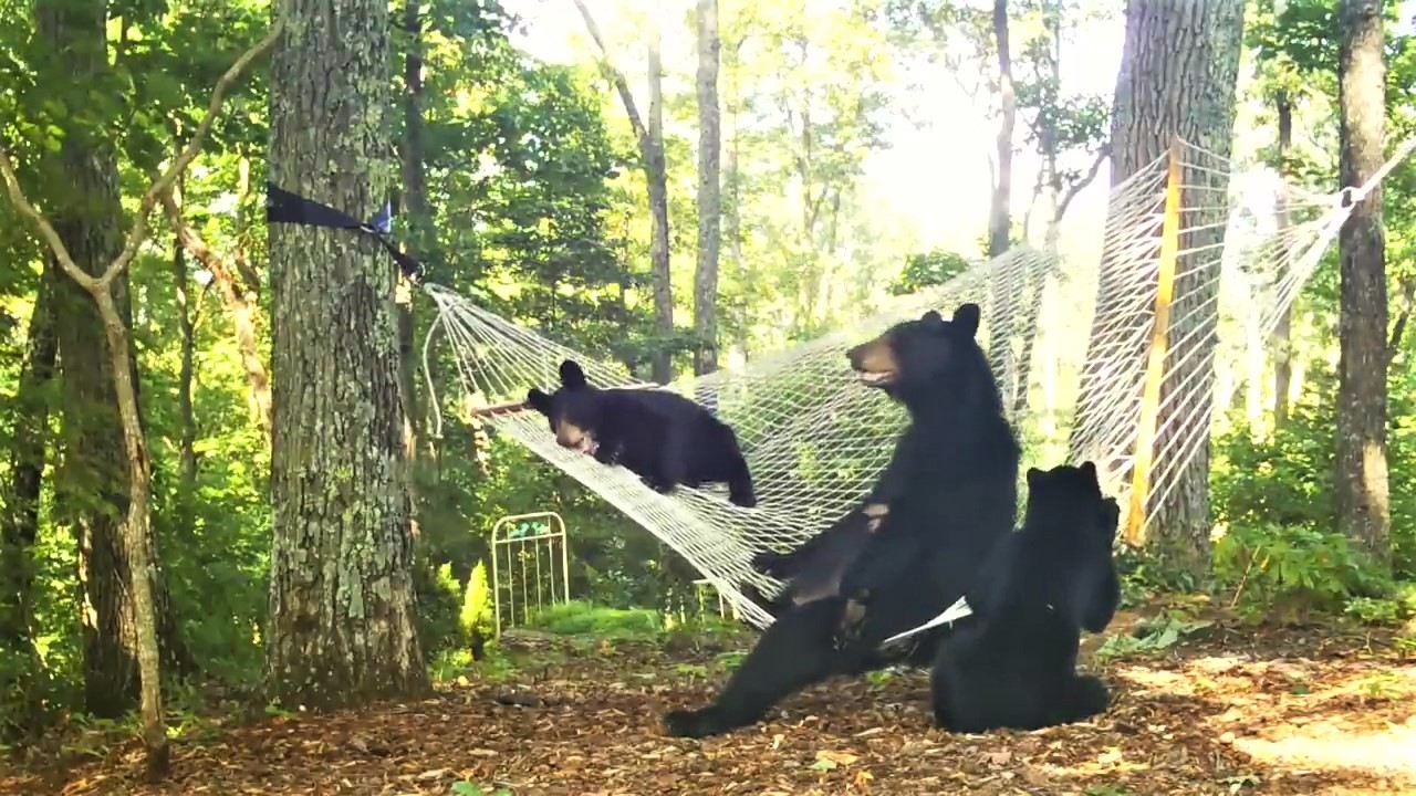 2021年08月11日在野外看到熊,人們都會瑟瑟發抖,其實熊也有可愛的一面!美國北卡羅萊納州網友Amy D.White住在郊區,她家附近經常有野生動物出沒,還會有動物跑到她家後院來玩。有一天一隻熊媽媽帶著2隻小熊到她家作客,她用攝影機紀錄下了「熊熊一家」玩吊床的有趣場景。