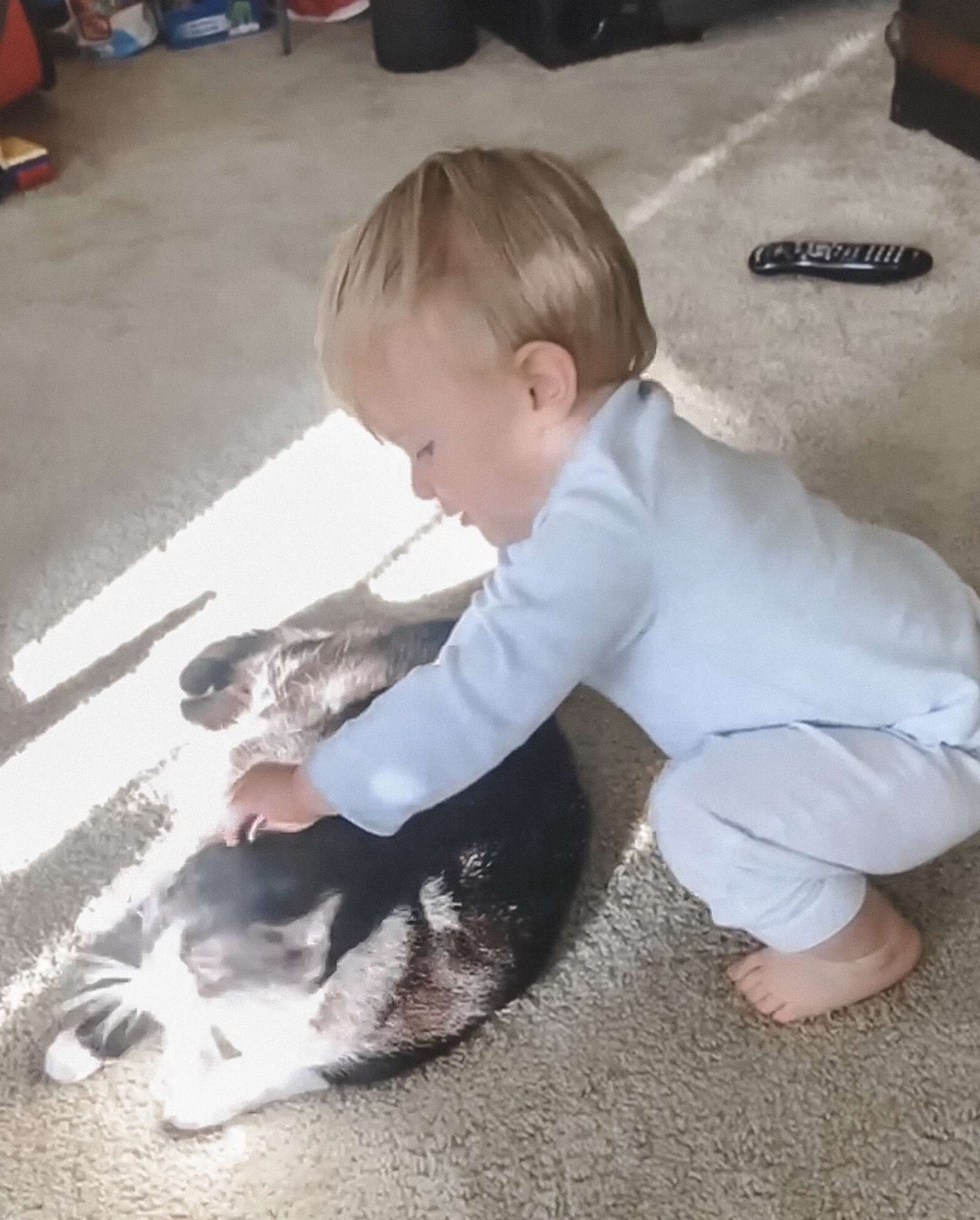 ▼上個月,Lindsey發現了兒子跟貓咪之間更多的羈絆。她發現睡覺之前他們還會偷偷交流。那天晚上Lindsey安頓好兒子,跟老公一起看電視時聽到樓上傳來貓叫聲。原來Zora不知道怎麼跑到了Brody的房間。Lindsey打開寶寶監視器,看到貓咪坐在嬰兒床邊的椅子上喵喵叫,兒子也站起來喵回去,他們就像在對話一樣。Lindsey和老公看到這一幕忍不住哈哈大笑。