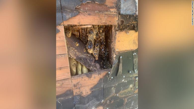 ▼Sara表示,這棟房子的狀況很糟糕。他們找來養蜂專家Allan Lattanzi檢查發現,大約45萬隻蜜蜂已經在這裡住了35年,後來花了1個星期的時間才陸續將蜜蜂移走。