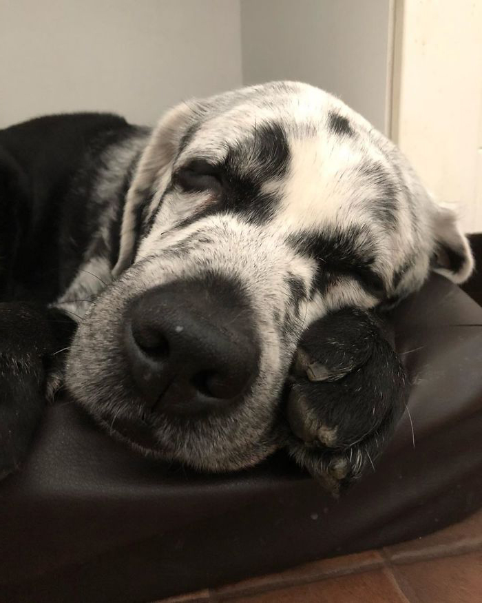 養一養還會褪色!10歲拉拉從黑色變「黑白斑紋犬」 限定毛色越看越帥氣!