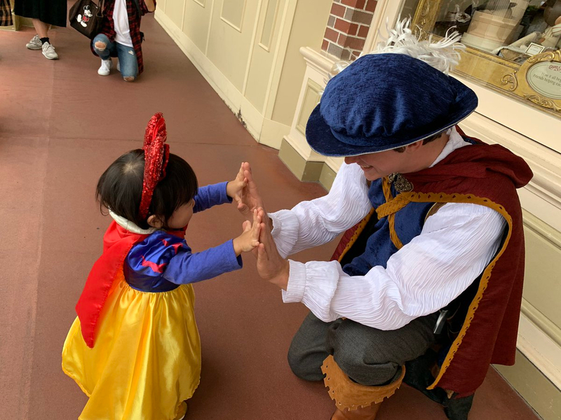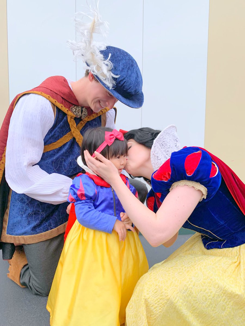這次迪士尼之旅,小女孩化身白雪公主,見到了自己最喜歡的角色。她就像穿越到了《白雪公主》的世界中一樣,這會成為她童年最珍貴、最美好的回憶之一~
