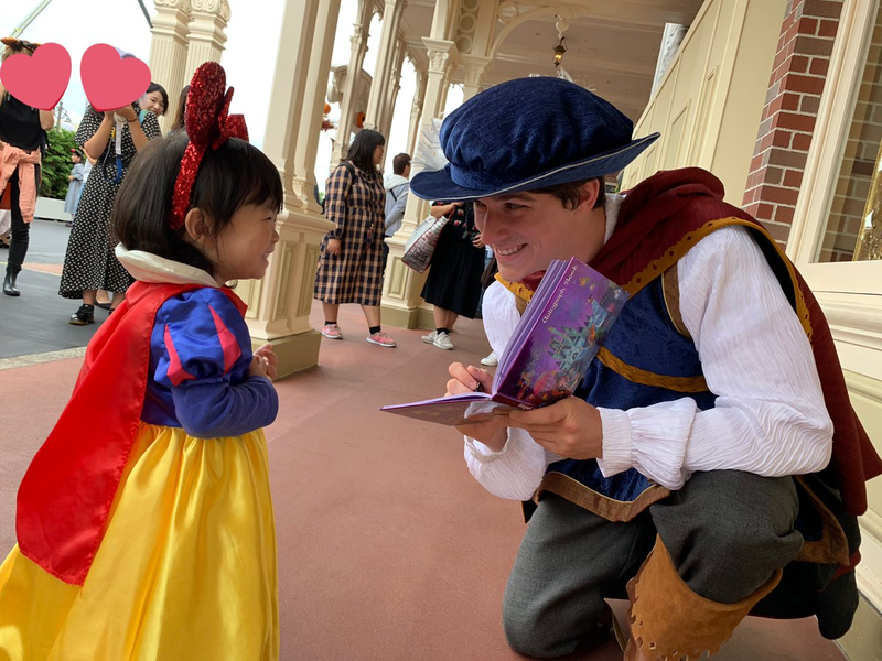 ▼這個迷你白雪公主實在太可愛,不僅吸引了很多遊客的目光,就連樂園內的王子都跑來求合照,還幫她簽名。
