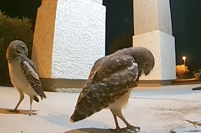▼Lyndsay搬到新家的第一晚,突然連續接到三次門口監視器偵測動靜的通知。她本以為有人登門拜訪,查看鏡頭畫面時,才發現有3隻小貓頭鷹站在家門口,正等著圓滾滾的眼睛看向鏡頭。貓頭鷹們好像在跟新搬來的鄰居問候,Lyndsay看到這一幕心都融化了。