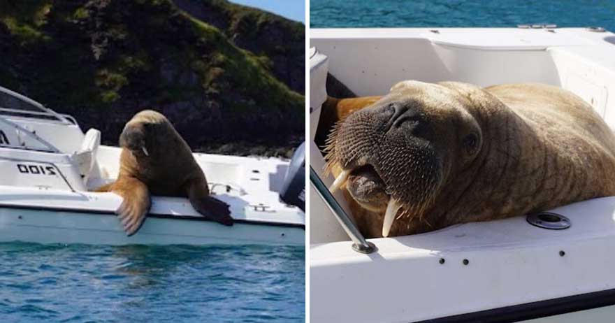 2021年08月16日英國愛爾蘭有一隻4歲左右的海象Wally,從今年3月以來,牠一直沿著西歐海岸到處探索。威爾士、康沃爾、法國、西班牙,還有錫利群島都曾出現牠的身影。8月10日這天,愛爾蘭一間釀酒廠發現Wally出現在自家船上,牠爬到穿上休息,整艘船都被壓到傾斜了~