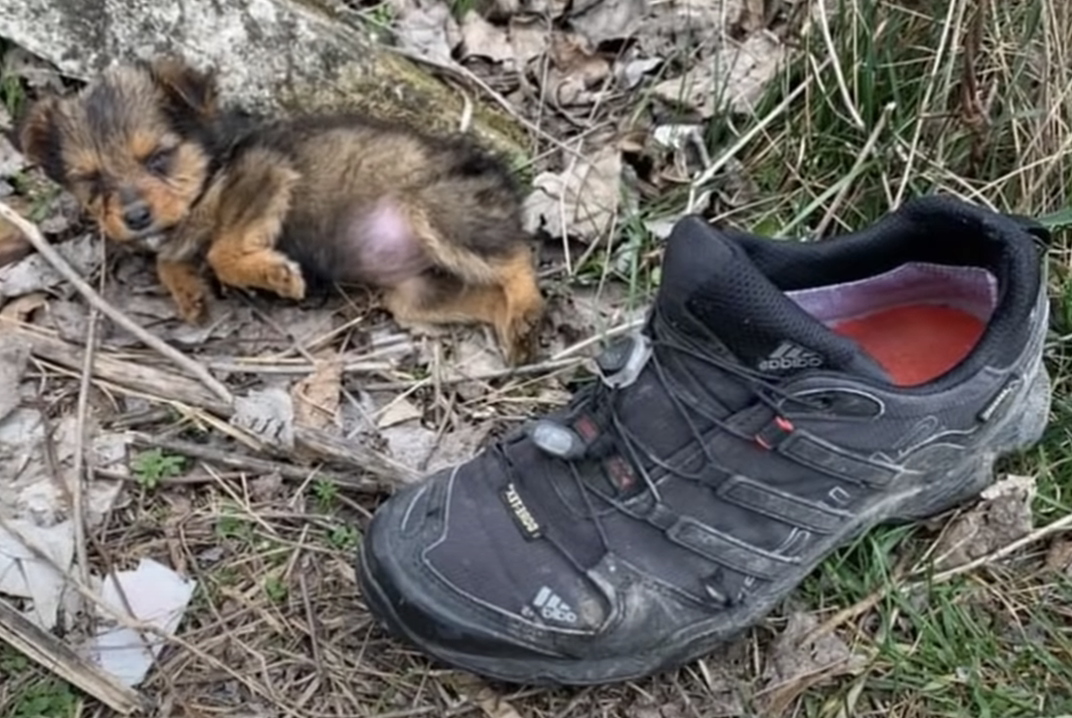 小奶狗遭棄垃圾場!縮破鞋裡「尋求一點安慰」 他路過直接抱起:來我們家