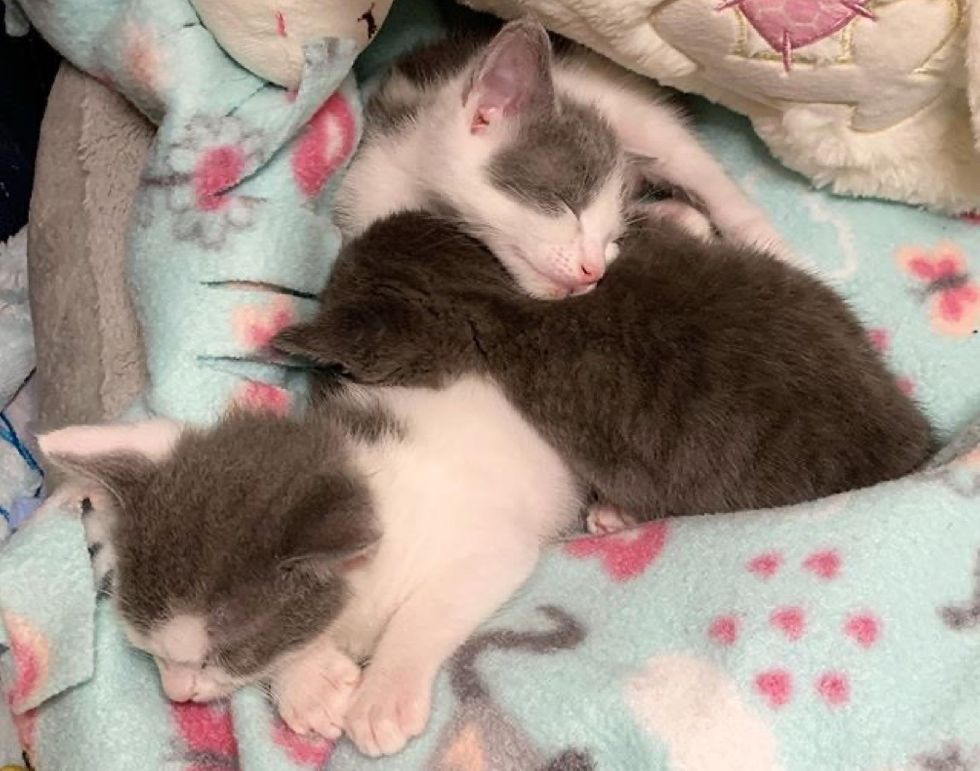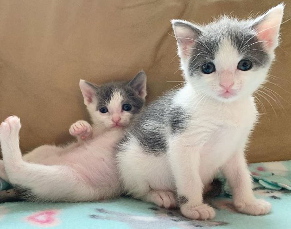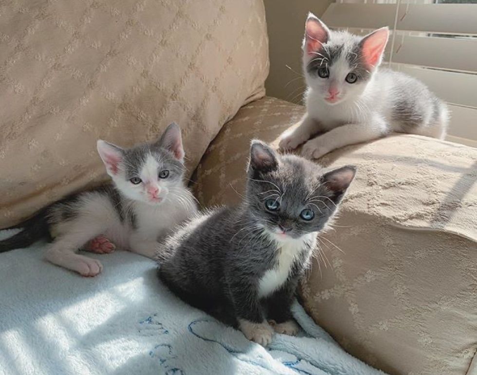 孤兒小黑喵獲救沒玩伴 遇到「灰白雙胞胎姊妹」抱緊不放開:以後就是一家人❤