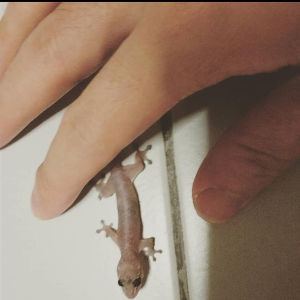 ▼欣汉表示,這隻小壁虎是他的「室友」,已經住在他家好長時間了。每天晚上打開燈,小壁虎都會出現。牠一點也不怕人,欣汉將手放在離牠很近的地方,牠並不會驚慌逃跑,還允許欣汉輕輕撫摸牠。