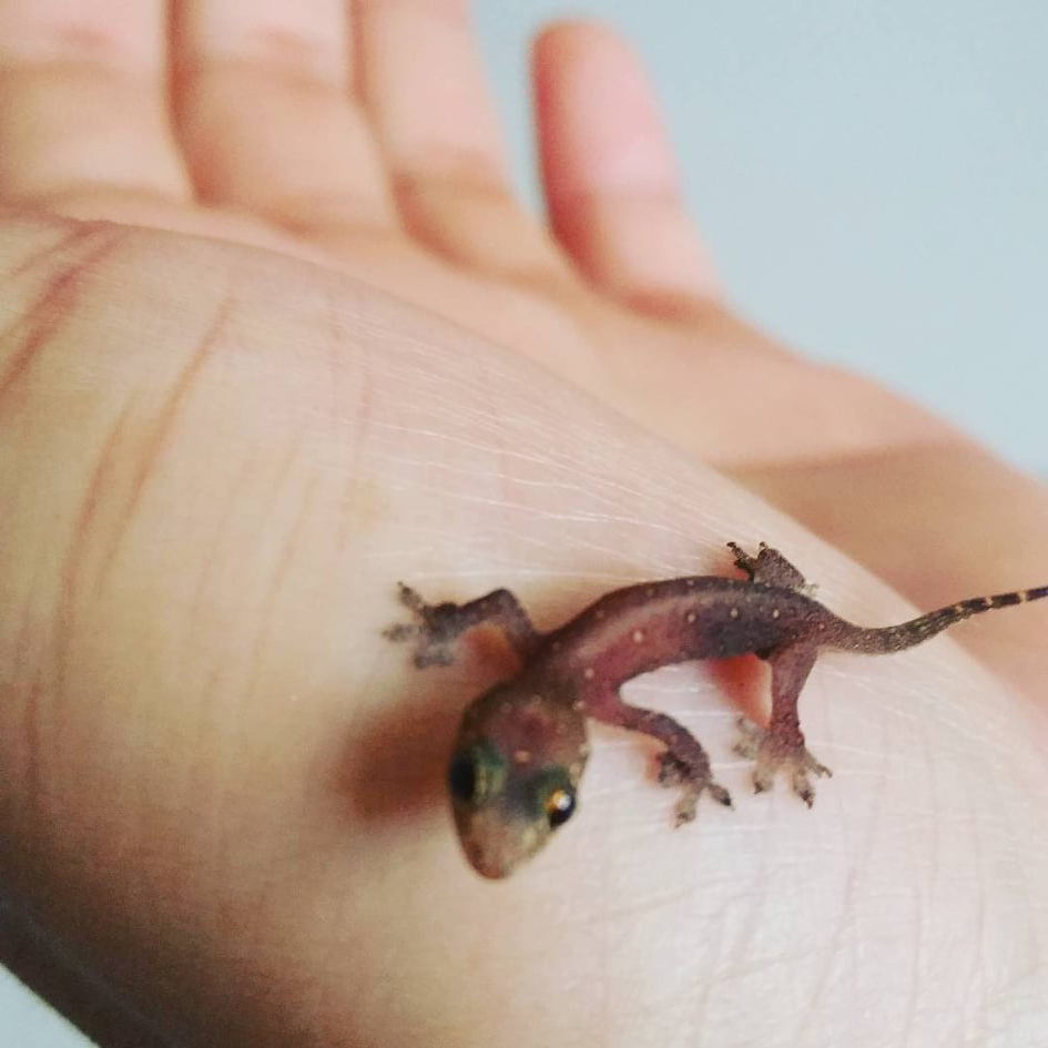 ▼小壁虎已經習慣了跟欣汉親密接觸,有時候會爬到他的手上玩耍。