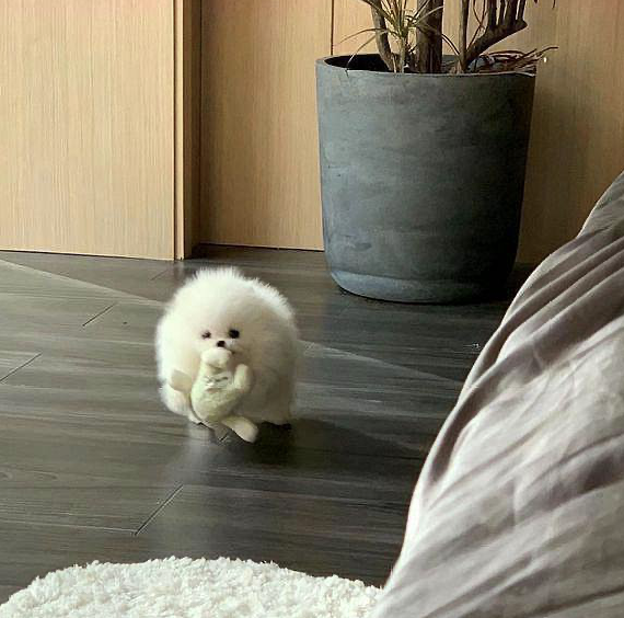 主人看到狗狗叼著一個個玩具跑過來,覺得自家狗狗太懂事、太貼心,一下子就笑出來,再大的氣也消了。這隻小博美根本就是狗狗界的模範生!