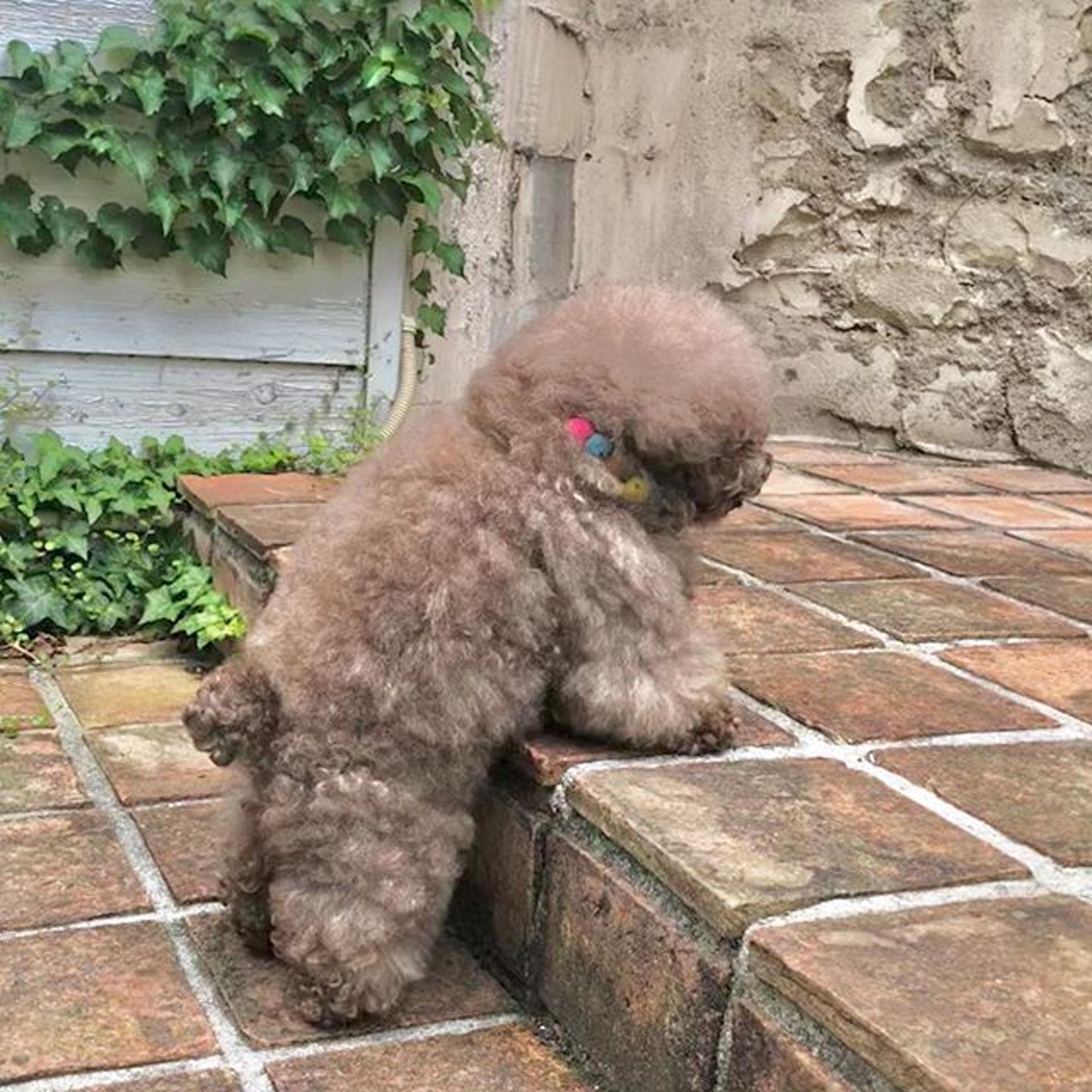 ▼Kokoro的毛髮柔軟而蓬鬆,有人說牠看起來就像一團棉花糖,也有人說像巧克力色的雲,而媽媽幫牠拍照的時候也特別喜歡捕捉Kokoro的背影~