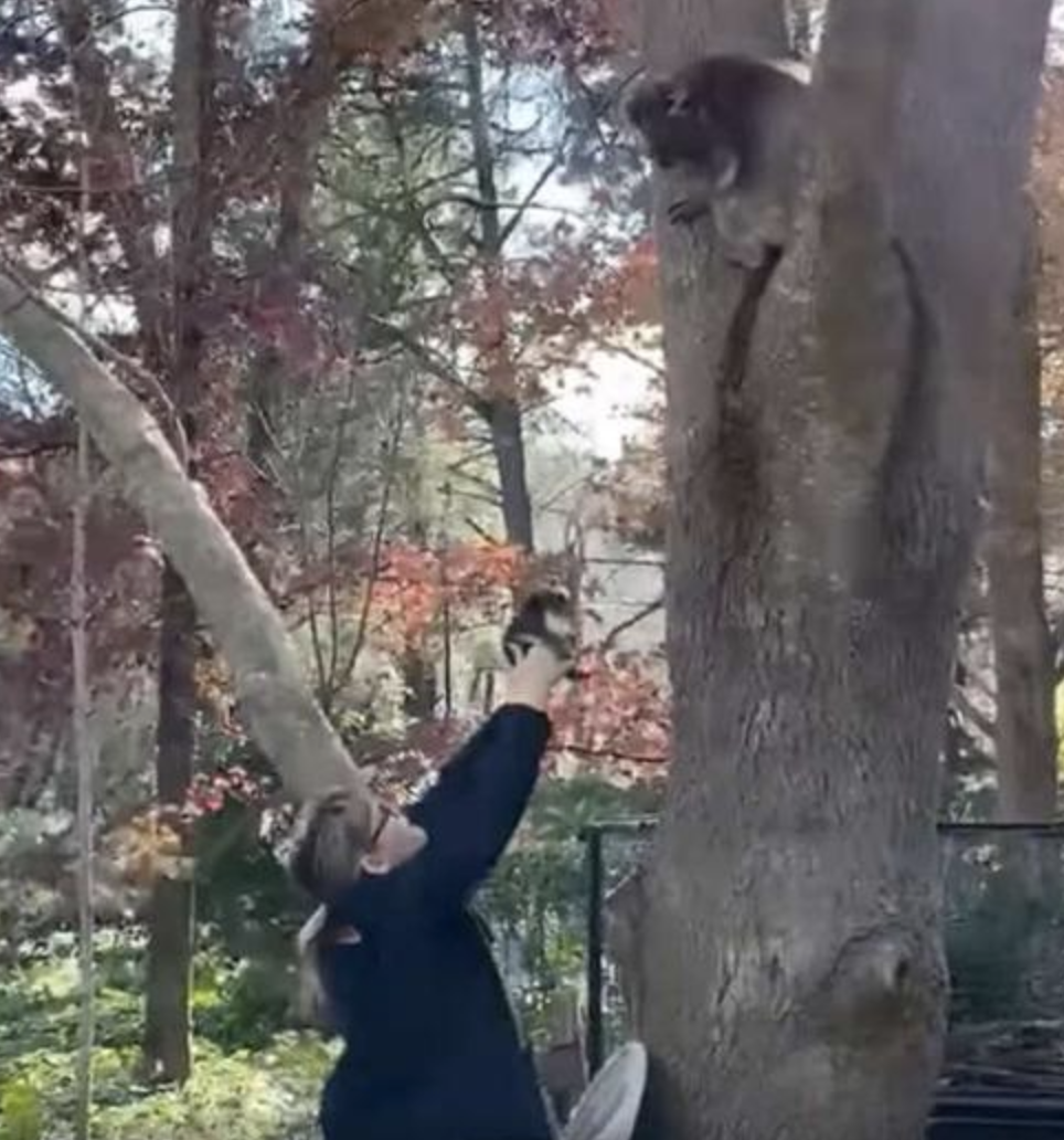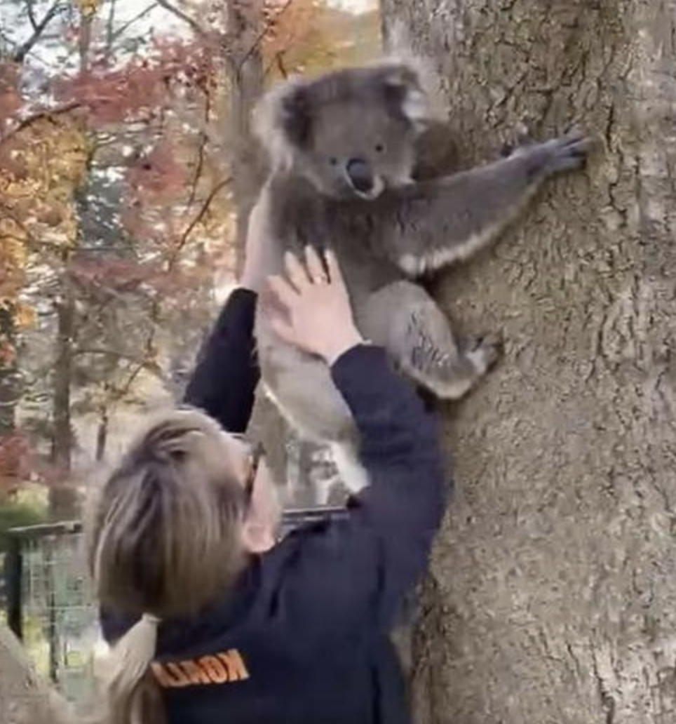 無尾熊寶寶掉樹! 有經驗志工馬上「獅子王式高舉」安慰:賣驚寶寶底加啦~