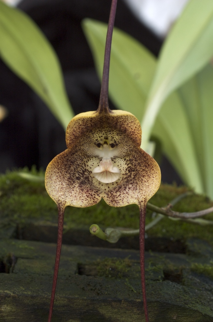 ▼猴子蘭花屬於「德古拉(Dracula)」屬。不過這跟吸血鬼德古拉沒什麼關係,這裡的Dracula源自拉丁語中的「Draco」,是「小飛龍」的意思。