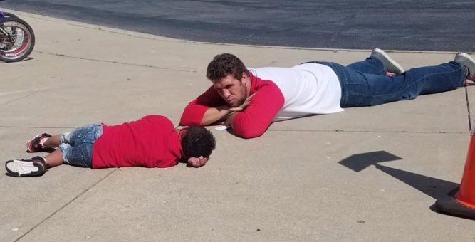 2021年08月20日這樣的老師太棒啦~美國俄亥俄州馬里昂(Marion)8歲男孩LJ患有自閉症、唐氏症。有一天他在學校裡突然躺在地上,蜷縮著不肯起來。副校長Smith沒有強硬地將他拉起來,而是趴在地上耐心跟LJ溝通,這溫馨的畫面溫暖了無數人的心。