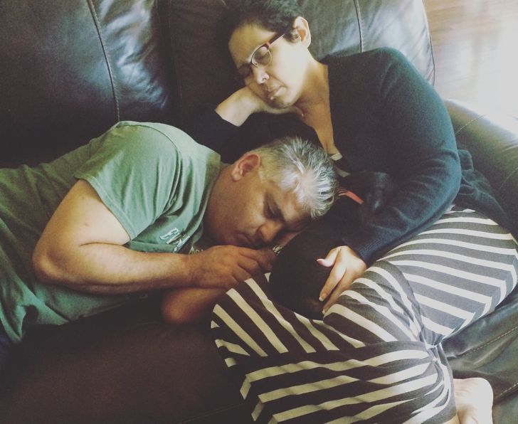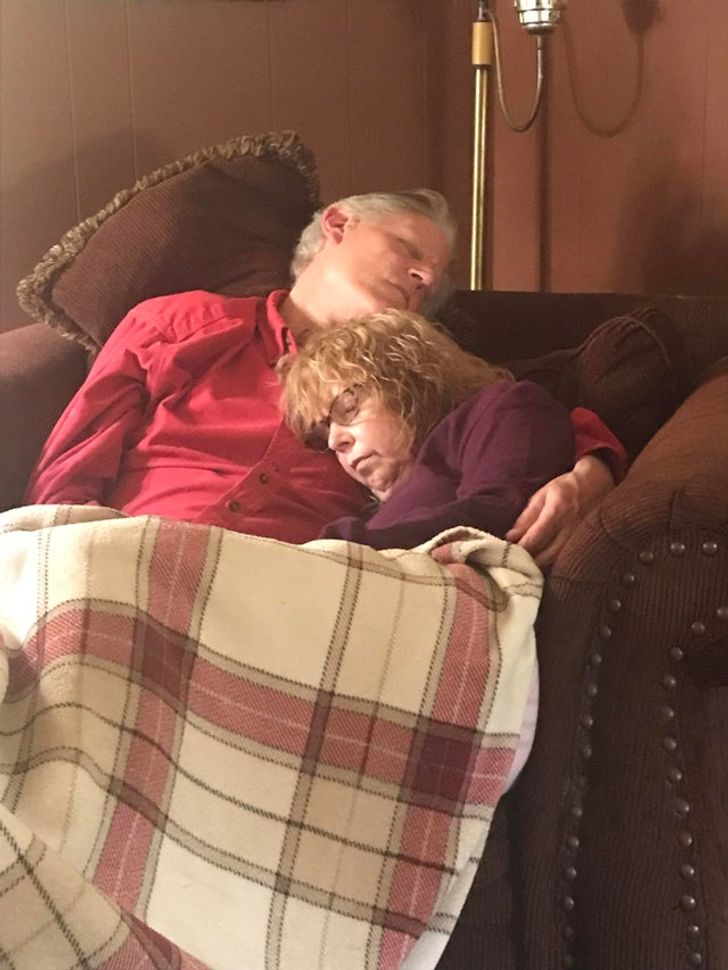 ▼爸爸媽媽一起看電視,然後相擁入眠。