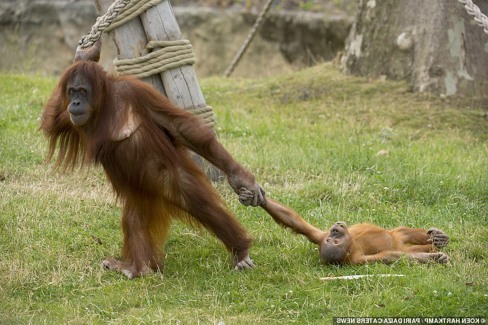 ▼紅毛猩猩媽媽將寶寶拖回家的照片在網路上流傳,網友們看到後紛紛笑說:「我好像看到小時候的我和我媽」、「為人父母後完全可以感同身受這位母親XD」、「猩猩媽都披頭散髮了,跟我被孩子搞瘋時一樣狼狽」、「果然世上的媽媽都是一樣的」。還有網友看到,照片中的猩猩媽媽一手托著寶寶,一手拉著綁在木柱上的繩索,笑說:「這媽媽除了要帶小孩,還要扛柴火,簡直是職業婦女的寫照!」