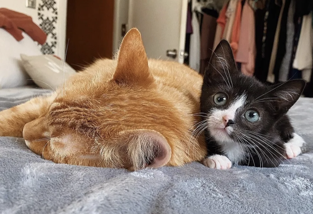 ▼36天後,Ceb的體重終於開始增長。牠還交到了新朋友,那就是橘貓Rae!Rae是一隻很高冷的貓咪,從來不會對同類示好,但Ceb依偎在牠身邊、跟牠一起午睡的時候,牠都表現得很溫柔。Dannielle看到這一幕,忍不住感嘆:「我的心都要融化了。」