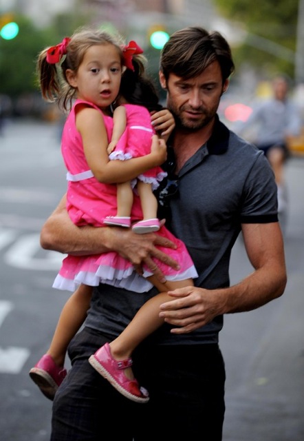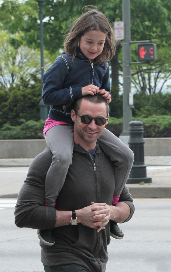 ▼4.抱著女兒:休傑克曼是「寵女魔人」,每次陪女兒出門,只要女兒累了,他都會二話不說一手抱起來。