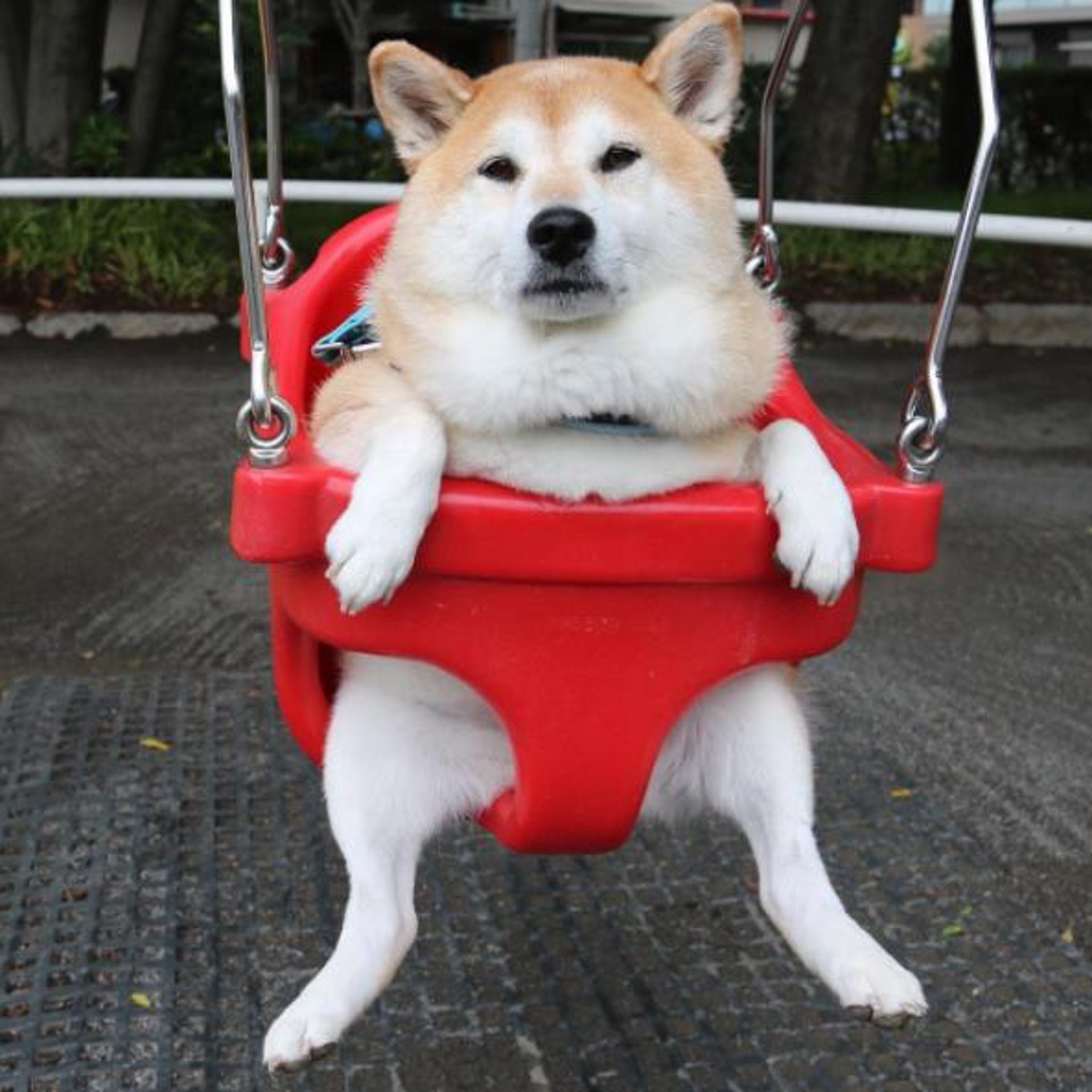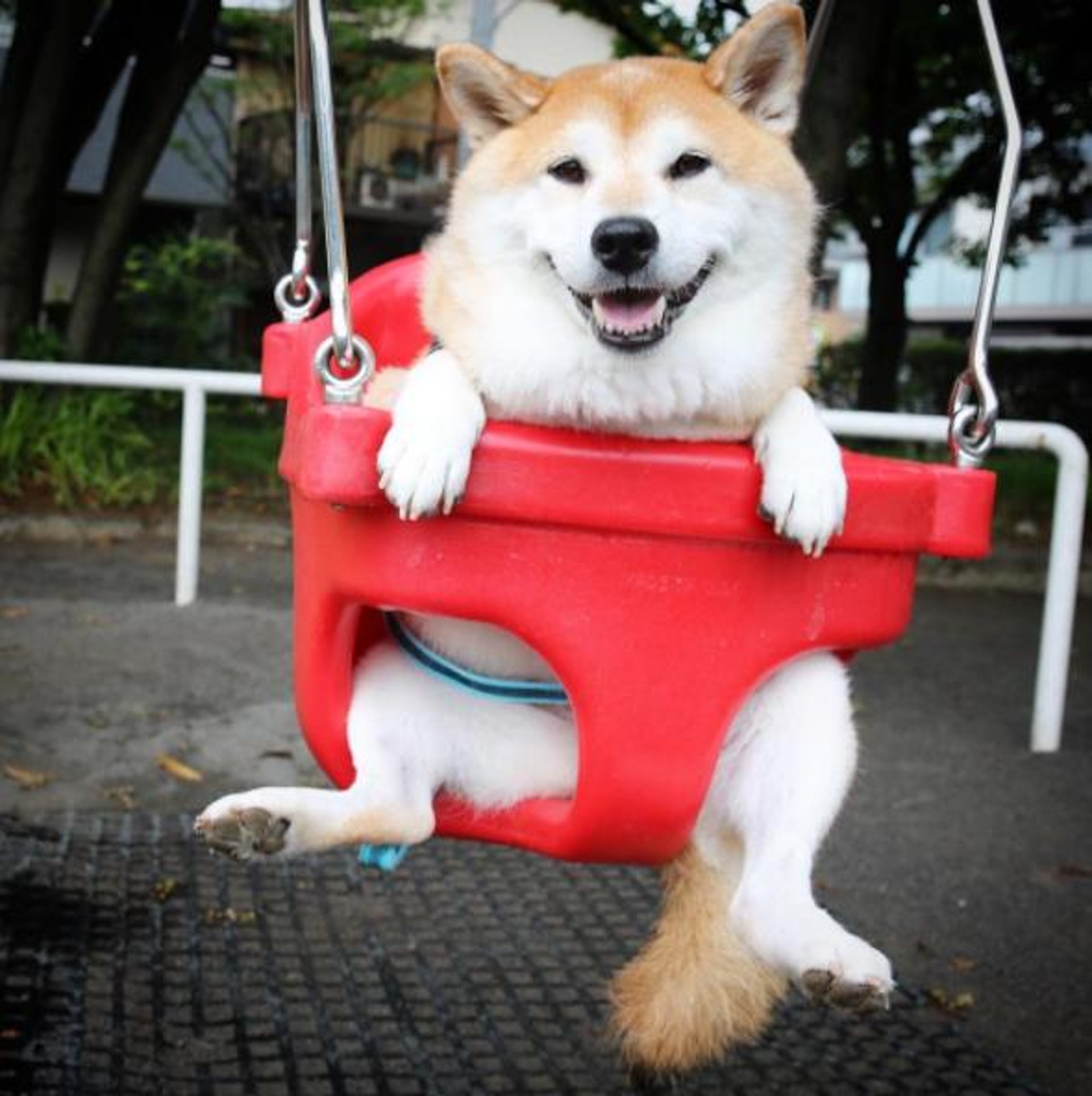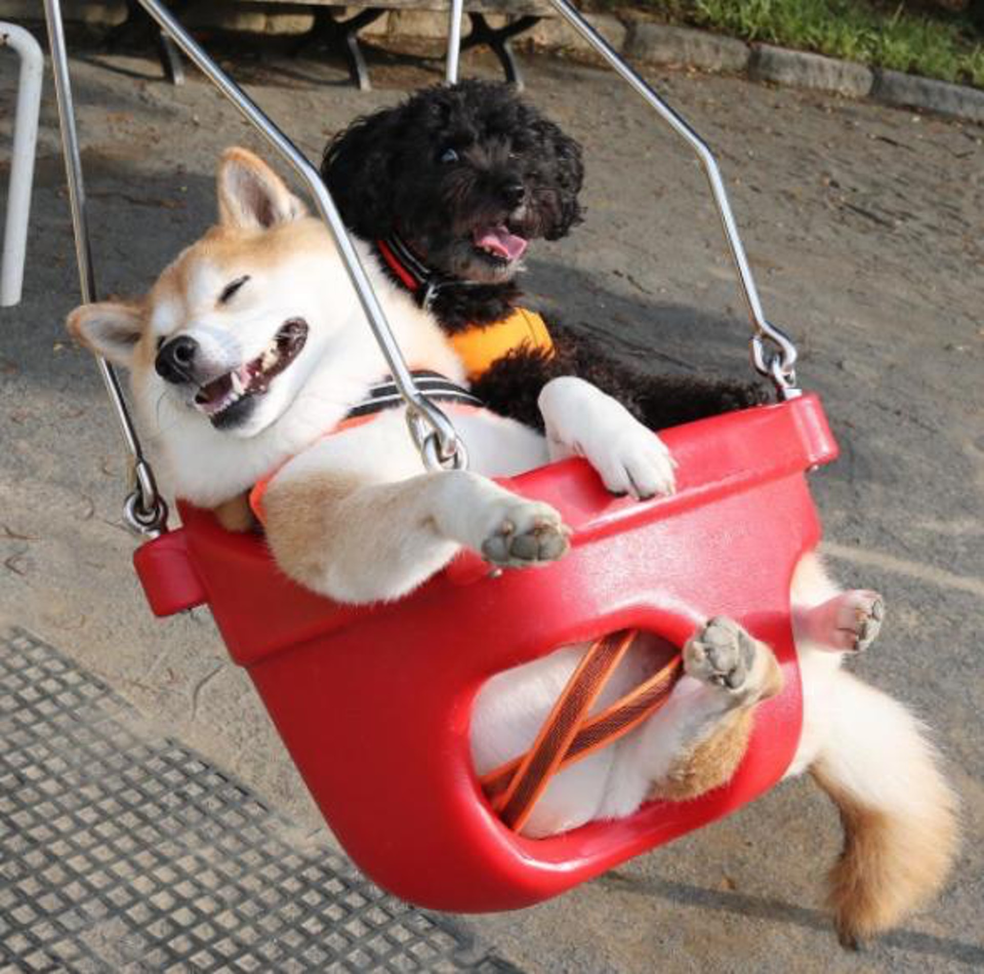 柴柴「最愛盪鞦韆」吐舌爽笑 主人一停止秒變臉:別偷懶,繼續推啊!