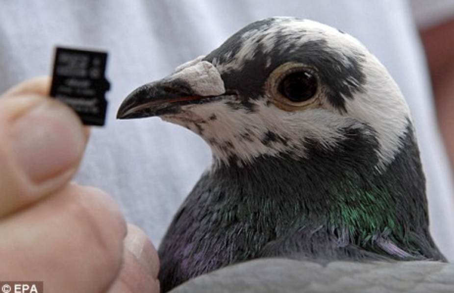 ▼結果溫斯頓來回一趟只花了2小時6分57秒,而那時候網路傳送資料只傳了4成。南非的網路竟然被一隻鴿子打敗了!這件事被媒體報導後,引發全世界的關注。南非電信服務龍頭Telkom連忙發表聲明,解釋說自己不是該公司唯一的合作廠商,而且自己曾經要用戶升級,但用戶沒有採納這一建議。