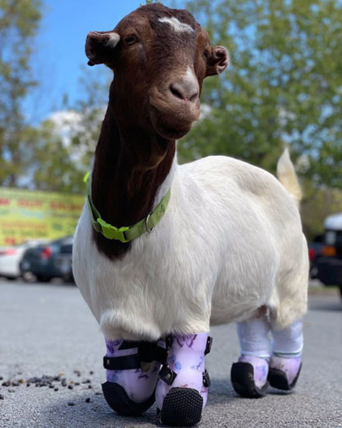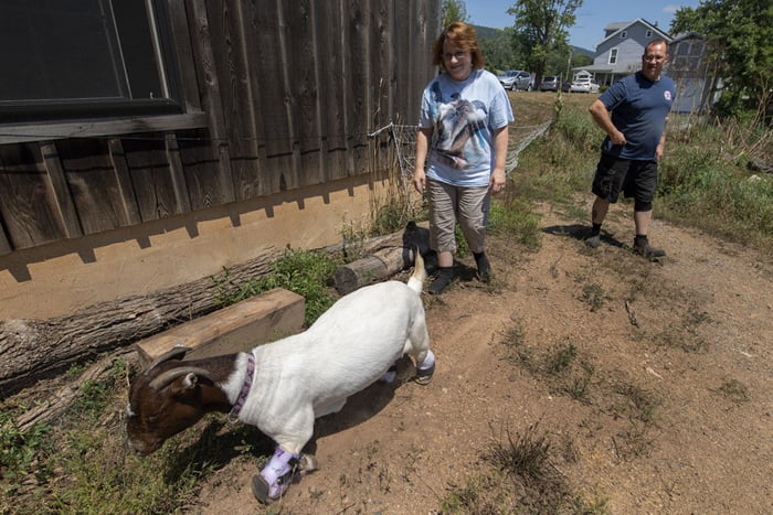 ▼Yourth夫婦帶Anna去獸醫院治療四肢,獸醫檢查後發現牠的肌腱已經定型,沒辦法拉直。Anna想要正常行走的話,只有裝上義肢才行。他們請專業人士幫忙製作義肢,現在Anna終於能像普通的山羊一樣跑跑跳跳了。