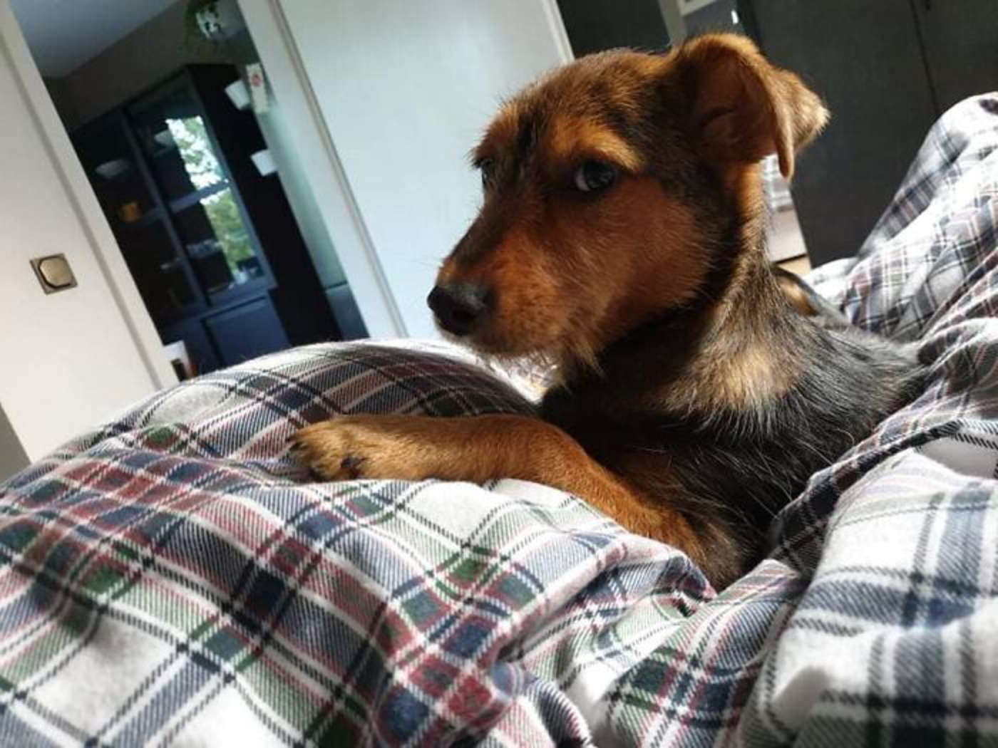 一隻舊鞋就是牠的家! 好心人發現飢餓小浪汪果斷「包辦狗生」